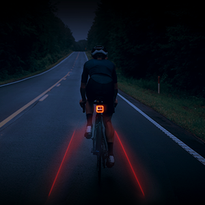 - Projiziert zwei Laser-Fahrradspuren an Ihren Seiten, um andere Autofahrer darauf hinzuweisen, einen sicheren Abstand zu Ihnen zu halten.