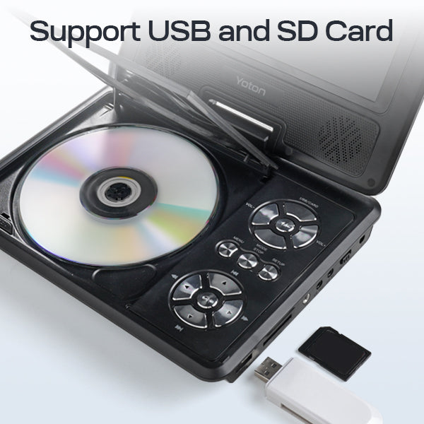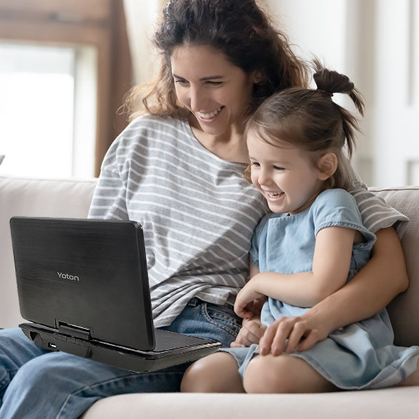 Unser kompakter tragbarer 9,5-Zoll-DVD-Player YOTON lässt sich leicht überall hin mitnehmen.