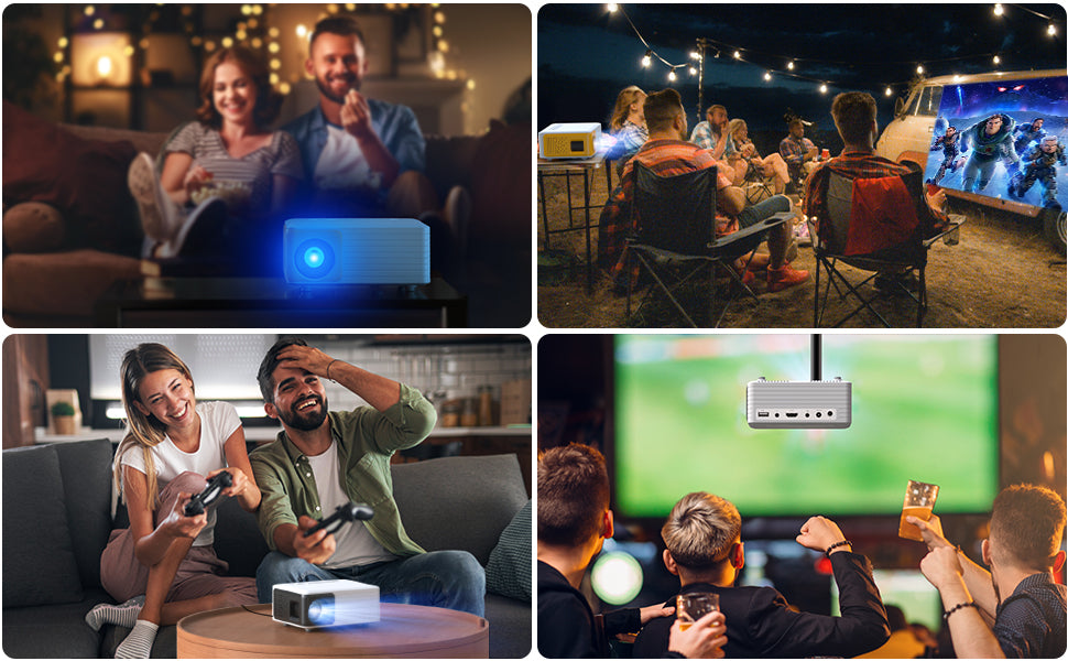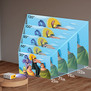 Net weight 0.9lb and size of 5.35*4.33*2.28inch, portable to carry anywhere. 30"-120" projection size puts you in an immersive viewing experience